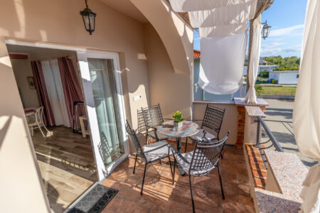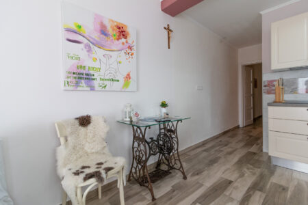 Vintage apartments are located in Banjol on the island of Rab, only a 5-minute walk from the beach, 3 minutes from a small shop and a 5 minute drive to the supermarket. Each apartment is equipped with air conditioning, flat screen TV with satellite channels, refrigerator, microwave, dishwasher, hair dryer;.. All units in this accommodation include a private bathroom and bed linen. Each apartment has a terrace that can be used to relax with morning coffee or evening relaxation. Free parking and WiFi are provided for our guests. The property has a large garden with a trampoline, various playgrounds and a barbecue – perfect for families with children.